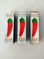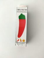 An Emojibator vibrator that looks like a chili pepper emoji, made out of high-quality medical-grade silicone.